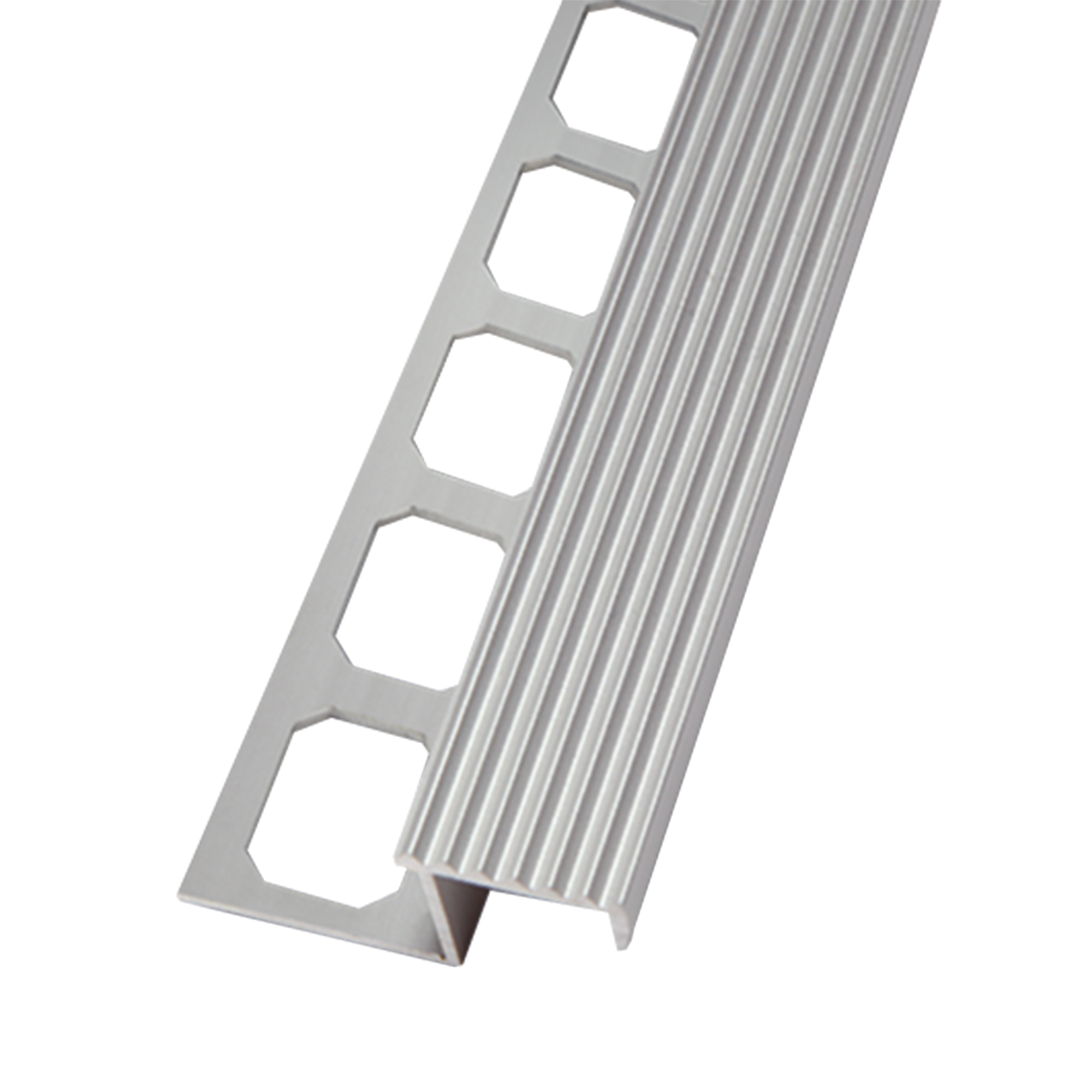 Transformeer uw tegelproject met het DeMa Tools trapprofiel aluminium geribbeld, zichtbreedte 20 mm, natuur.